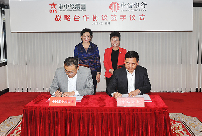9月22日,姜巖總經(jīng)理在集團(tuán)會(huì)見了中信集團(tuán)副總經(jīng)理兼中信銀行行長(zhǎng)李慶萍一行,雙方就港中旅集團(tuán)與中信集團(tuán)及中信銀行深化合作進(jìn)行會(huì)談,并舉行《戰(zhàn)略合作協(xié)議》簽字儀式。