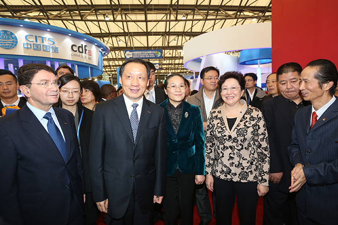 11月14日上午,以「相約美麗中國(guó),共創(chuàng)旅遊未來」?fàn)?wèi)主題的2014中國(guó)國(guó)際旅遊交易會(huì)在上海開幕。上海市市長(zhǎng)楊雄、國(guó)家旅遊局局長(zhǎng)李金早出席開館儀式幷分別致辭。世界旅遊組織秘書長(zhǎng)塔勒布·瑞法依、主賓國(guó)代表美國(guó)商務(wù)部旅遊旅行辦公室執(zhí)行主任凱利·克萊格海德也分別致辭。