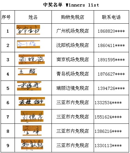 中免集團(tuán)發(fā)起的“離島免稅周年慶 沖刺倫敦觀奧運(yùn)”大型促銷活動(dòng)在中免集團(tuán)旗下19家免稅門店開展,活動(dòng)現(xiàn)已結(jié)束,其中“倫敦奧運(yùn)觀賽之旅”中獎(jiǎng)?lì)櫩鸵言诒本┦蟹綀A公證處公證人員嚴(yán)格監(jiān)督公證下抽取產(chǎn)生,中獎(jiǎng)?lì)櫩兔麊伟l(fā)布如下:
