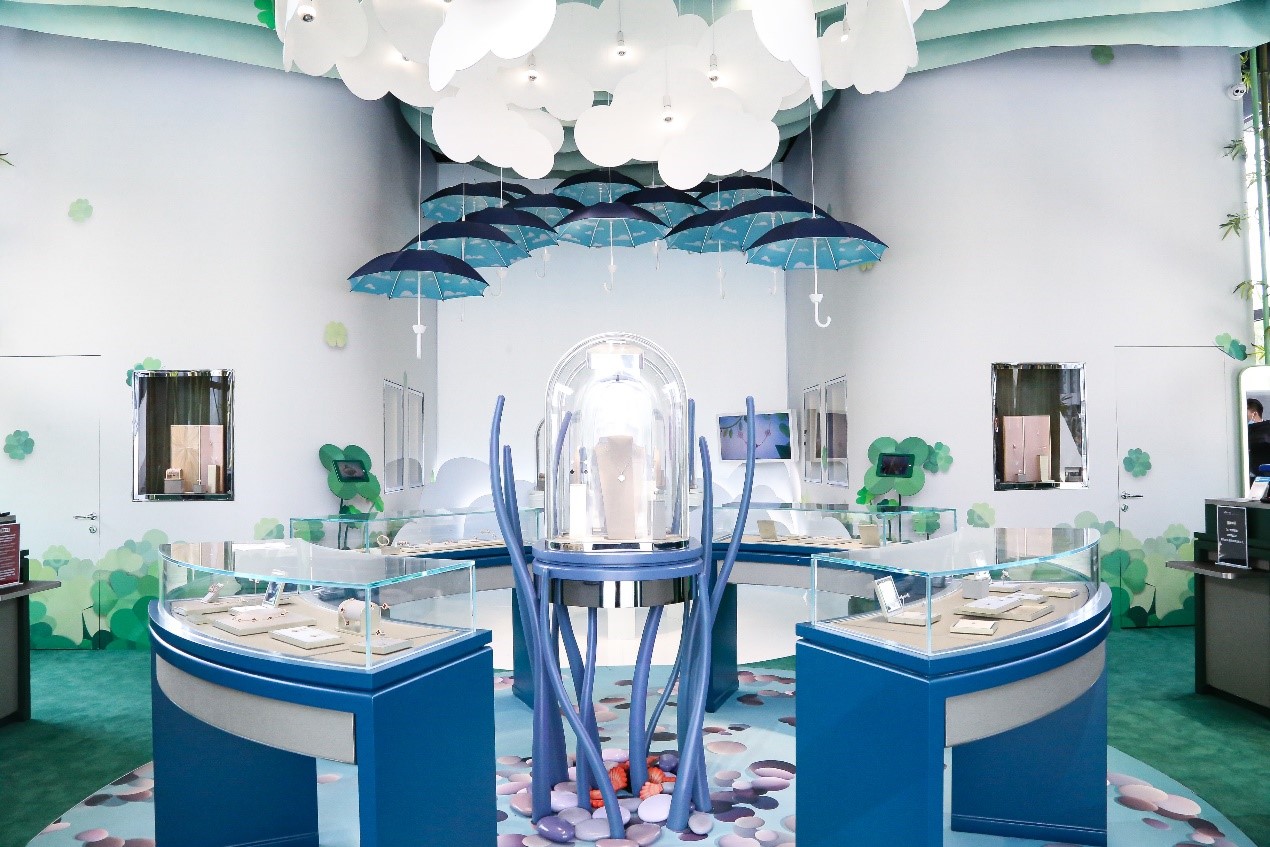 Van Cleef & Arpels梵克雅寶“Alhambra幸運(yùn)花園”免稅限時(shí)精品店位于三亞國(guó)際免稅城后廣場(chǎng)。世家要員雅克·雅寶Jacques Arpels常言道:“心懷幸運(yùn)之愿,方能成為幸運(yùn)之士。”幸運(yùn)是梵克雅寶一直以來(lái)十分珍視的價(jià)值,更是其創(chuàng)意靈感的泉源之一,因此限時(shí)精品店內(nèi)部設(shè)計(jì)以世家標(biāo)志性四葉幸運(yùn)圖案為主題,以延續(xù)這珍貴價(jià)值。進(jìn)店后,首先映入訪客眼簾的將是Burcu & Geoffrey 這對(duì)法國(guó)和土耳其的導(dǎo)演拍檔為Alhambra 特別創(chuàng)作的四葉圖騰造型蝴蝶沿途散播幸運(yùn)的種子,帶領(lǐng)游客穿梭在幸運(yùn)花園中,引領(lǐng)大眾一同探索夢(mèng)幻迷人的Alhambra 幸運(yùn)花園, 為游客營(yíng)造出一種舒適愉快的珠寶欣賞空間。