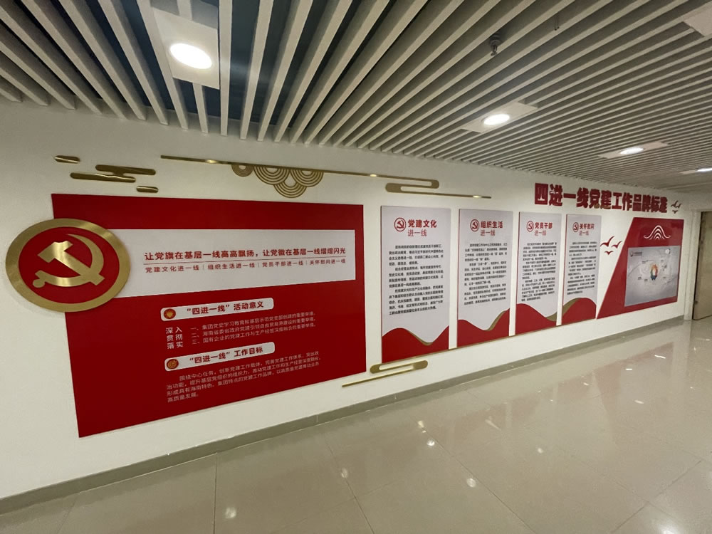 該長廊全長近125米,分為“初心使命”“奮輯前行”“黨建領(lǐng)航”“踐行承諾”四個篇章,涵蓋了習(xí)總書記重要講話精神摘錄、企業(yè)發(fā)展歷程、歷史成績、黨組織概況及組織架構(gòu)、“我為群眾辦實事”實踐活動開展情況、精準(zhǔn)扶貧、黨風(fēng)廉政建設(shè)、防范走私套代購專項工作、黨建品牌創(chuàng)建要點、支部特色工作法、“兩優(yōu)一先”榮譽展示、黨建活動剪影、黨務(wù)公開欄、集團黨建示范經(jīng)驗推廣展示等十多個大類的內(nèi)容,采用了傳統(tǒng)圖文并茂與視聽互動相結(jié)合的形式,專門設(shè)置了3處電子顯示屏,循環(huán)播放各類影像素材,全景展現(xiàn)了三亞店多年來堅持“聽黨話、跟黨走”不動搖的責(zé)任擔(dān)當(dāng)和廣大黨員干部員工不怕困難、勇于創(chuàng)新的奮斗精神。