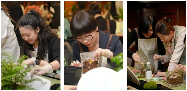 其中,微景觀(guān)藝術(shù)沙龍全天分為四場(chǎng),公司總部200余名女性職工積極參與。活動(dòng)期間,學(xué)員在老師的帶領(lǐng)下,通過(guò)聽(tīng)、聞、看、觸,打開(kāi)并提升自我的感知力,在與自然共處的同時(shí),擁抱自己,接納自己。