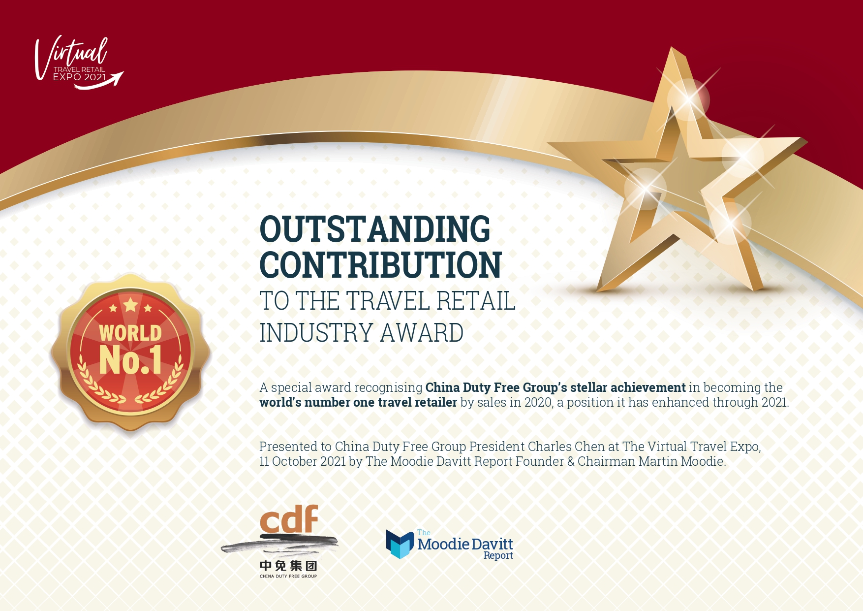 Martin Moodie表示:“我很榮幸能夠為中免集團頒發(fā)這個杰出貢獻獎——此獎項旨在表彰中免集團在2020年成為全球旅游零售業(yè)銷售額冠軍的卓越成就,熱烈祝賀!”